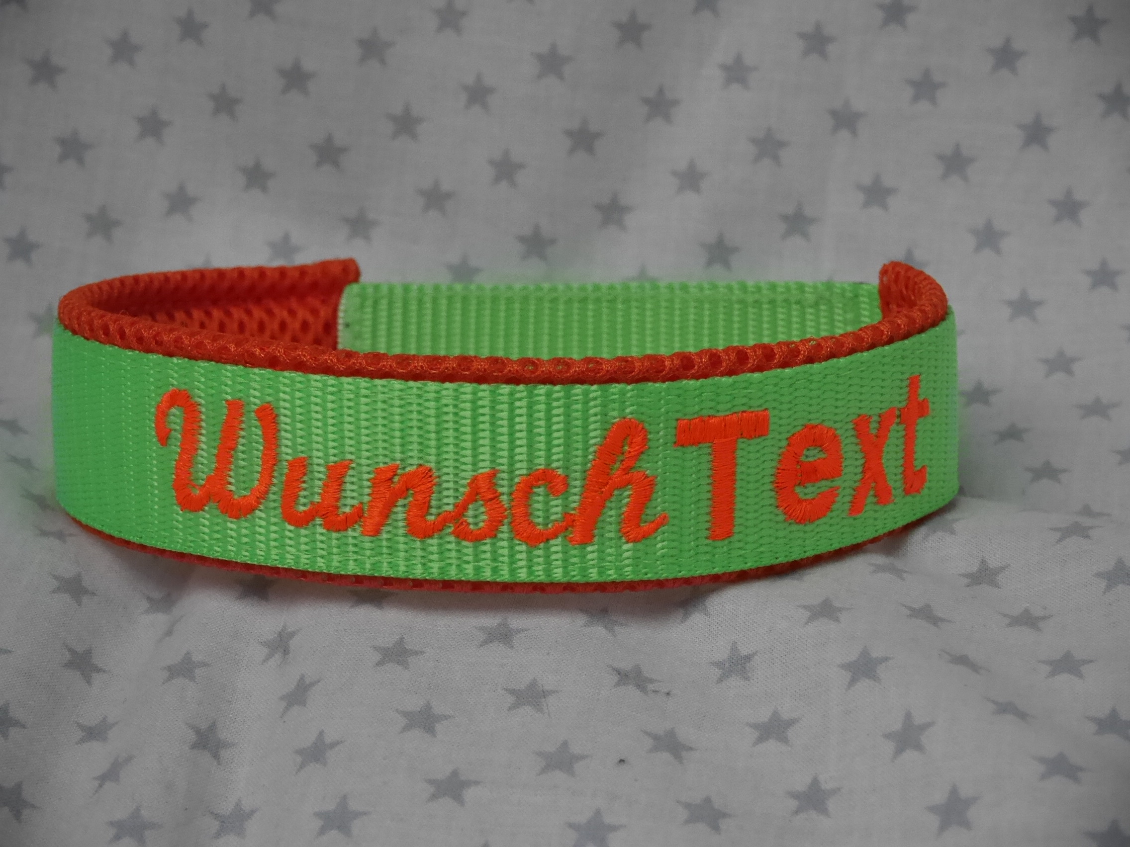 Achtung ! Bitte beachten Sie das bei alle Varianten aus GUMMIBAND die Qualität der Bestickung etwas nachlässt, es sieht nicht ganz so „schick“ aus wie auf Stoff, das ist einfach so und nicht zu ändern. Es können auch kleine Enden weisse Gummibändchen herausschauen (die Sticknadel durchtrennt beim Stickvorgang einige kleine Gummifädchen).
