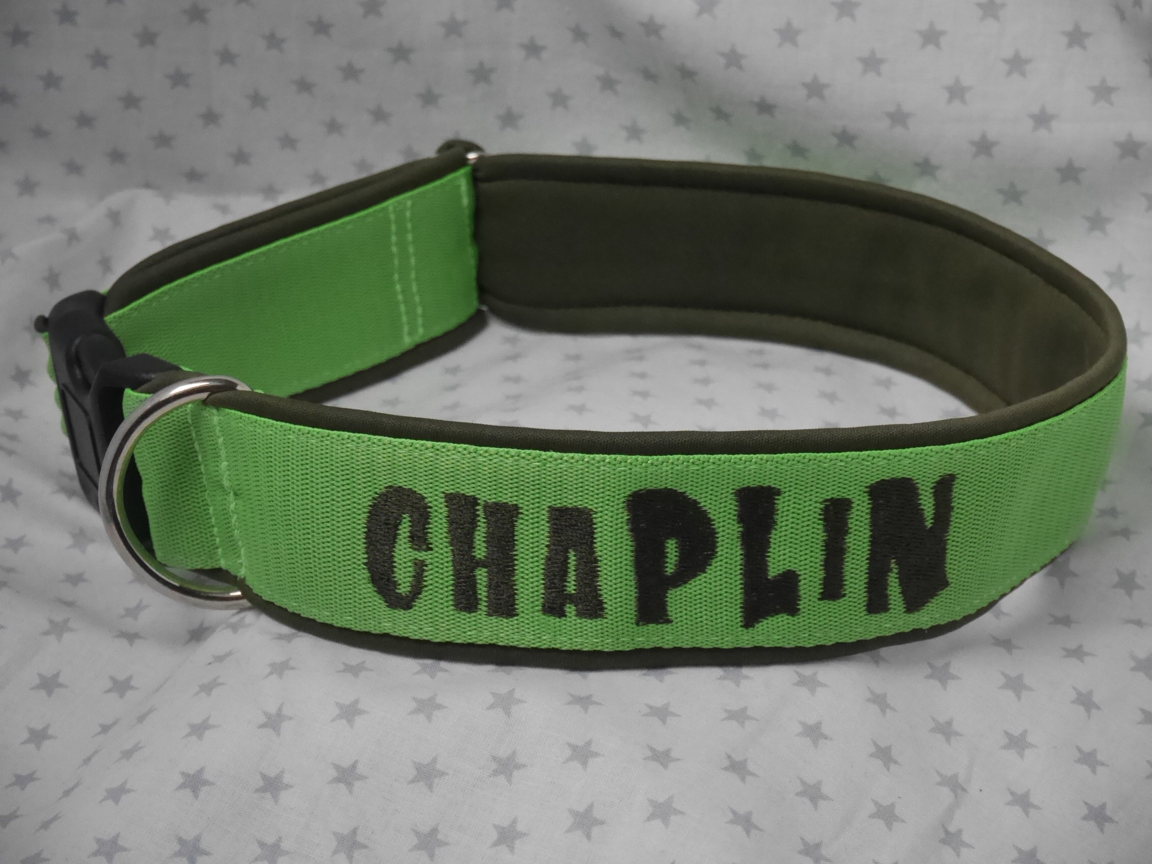 Es gäbe das Kletthalsband, das klassische Halsband mit Schnalle oder auch eine ZugStopp Variante !