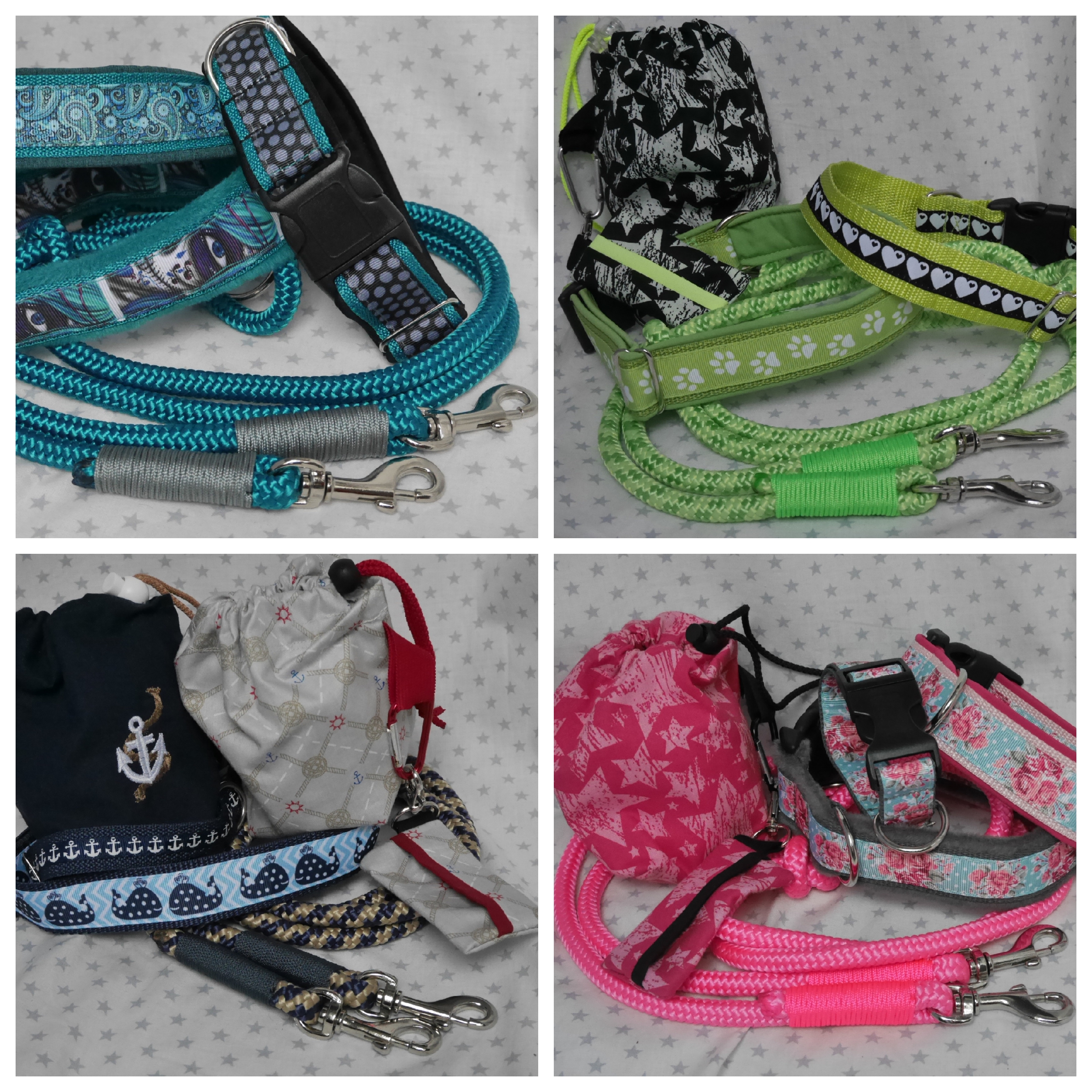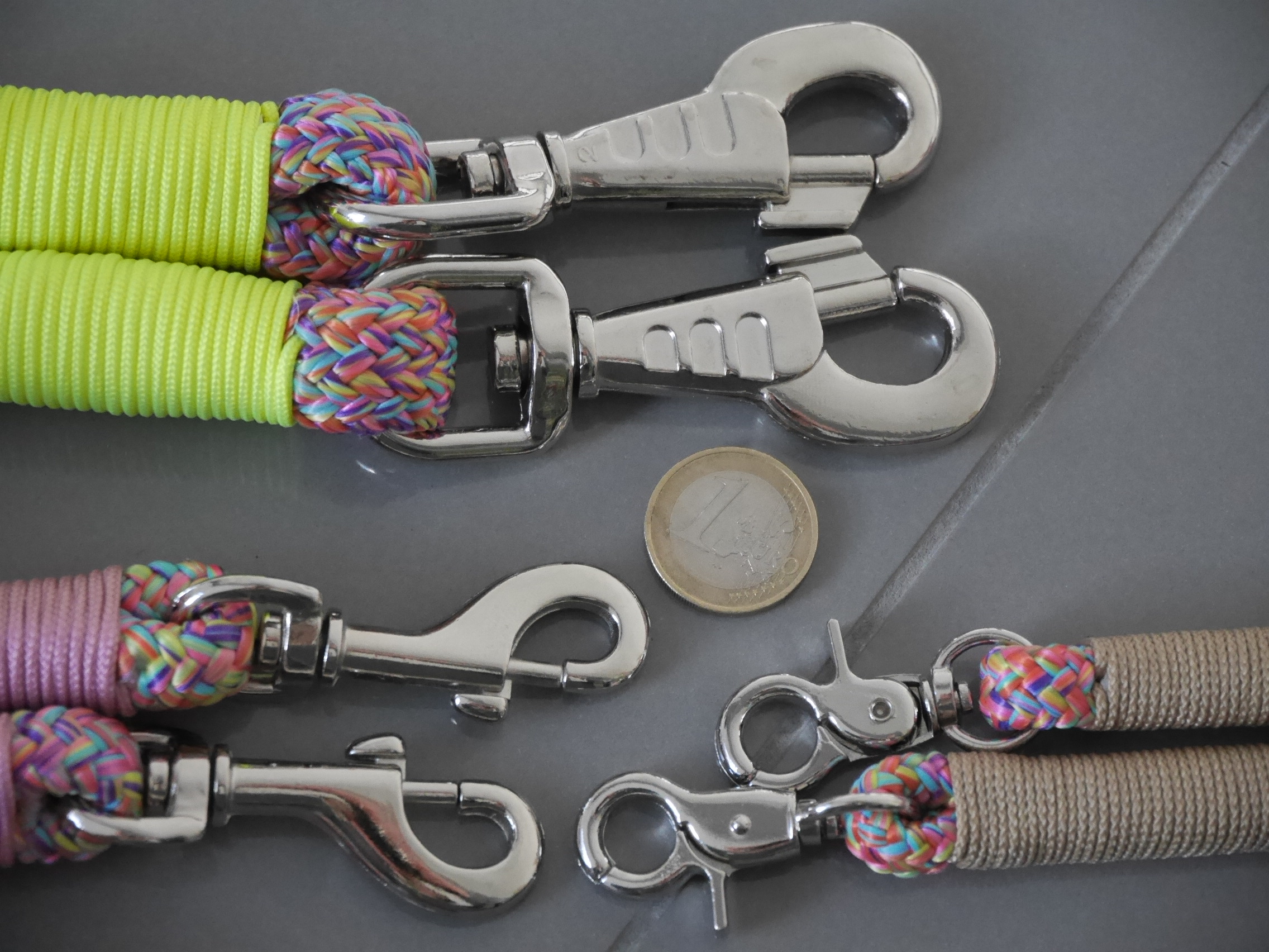 Kurz-Leinen in jeder Länge oder als Handschlaufe machbar (einige sind sofort fertig im „Sofort-Kauf“ zu finden) !